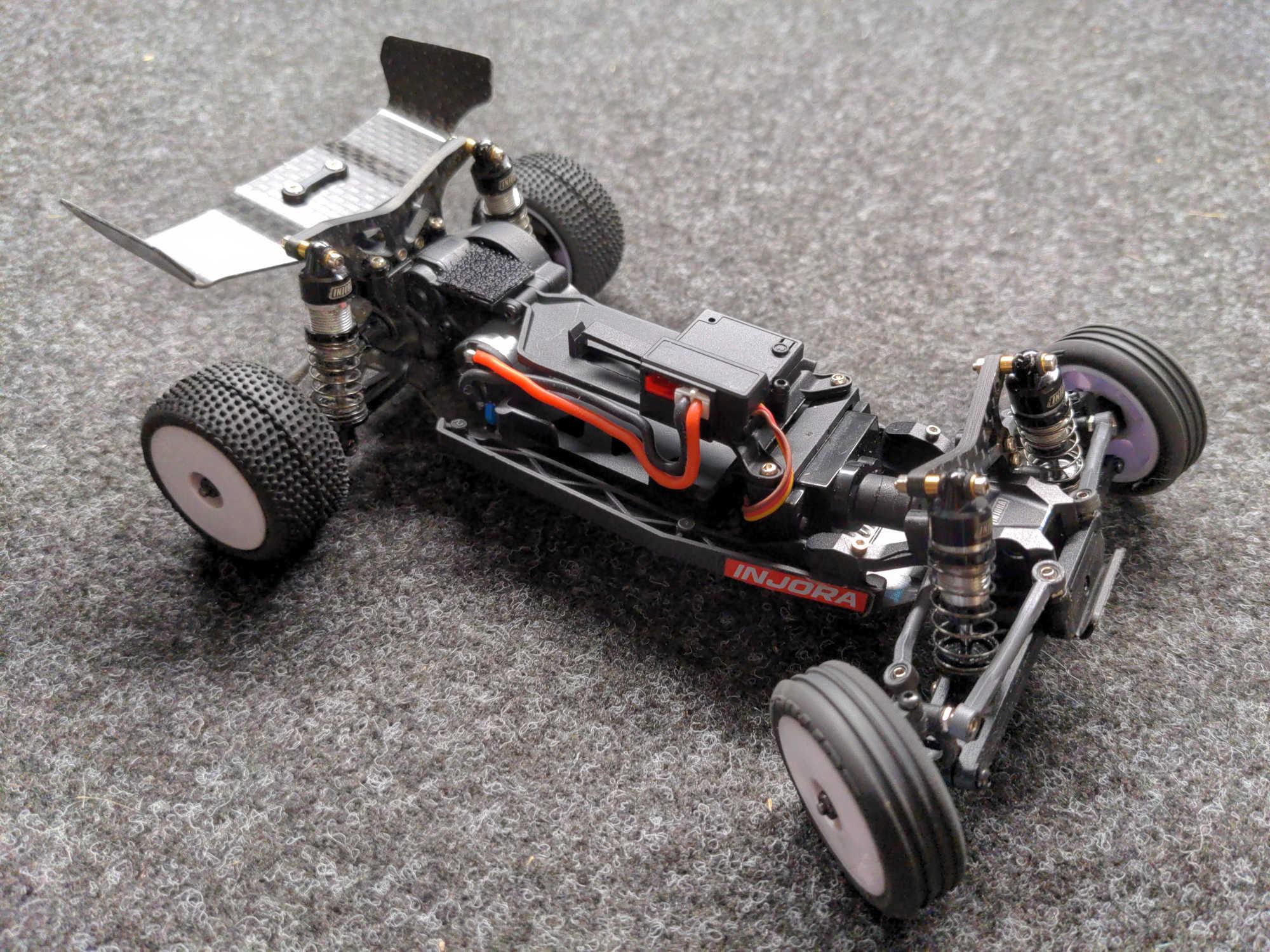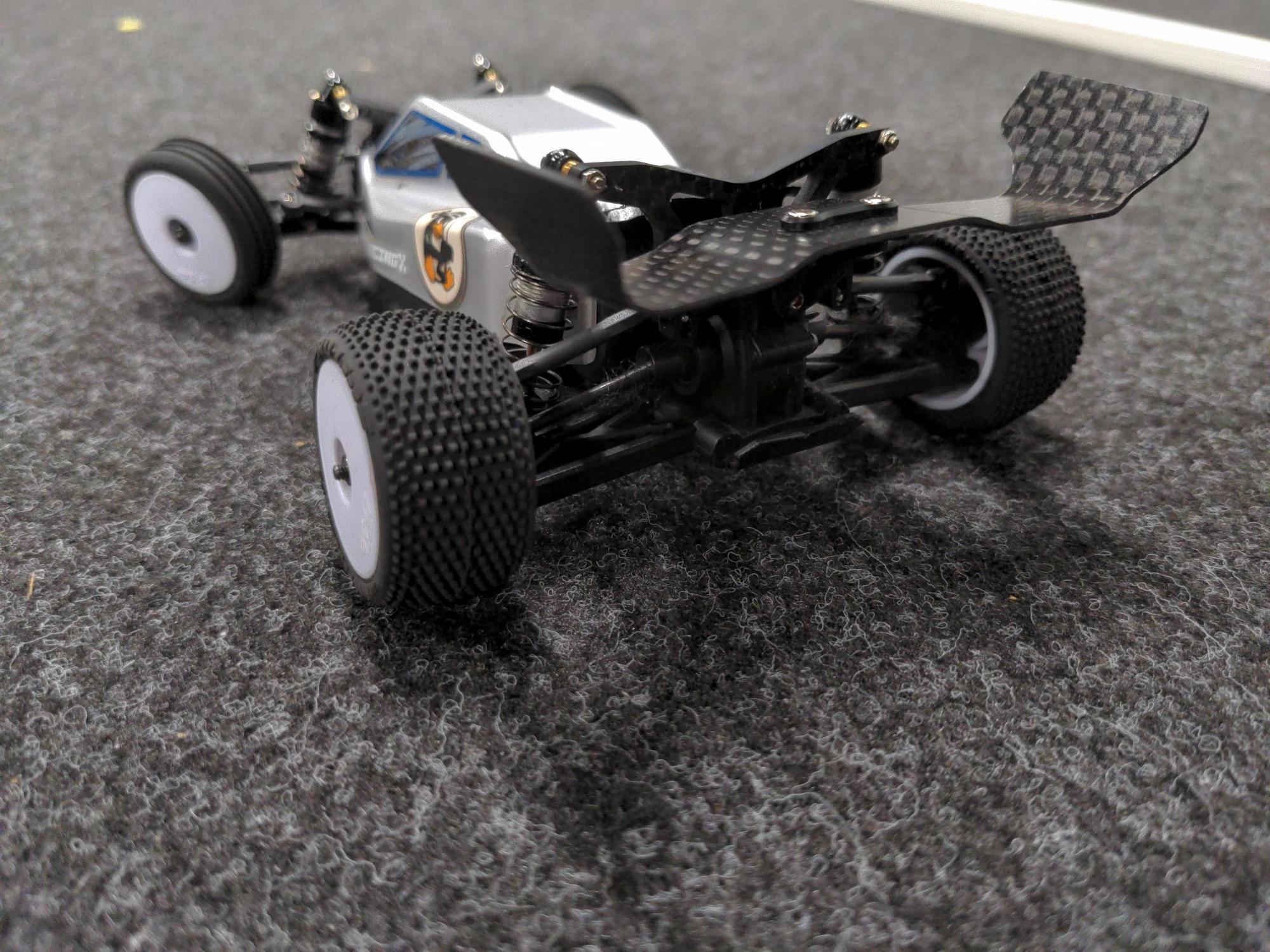 Plusieurs modèles existent, plus ou moins onéreuses et plus ou moins performantes... Nous utilisons principalement un modèle de la marque Losi, le Micro B. C'est sans doute le modèle le plus performant de sa catégorie Aussi bien adapté aux débutants qu'aux pilotes confirmés. Toutes les options possible et imaginable, en carbone, en aluminium CNC... sont disponibles pour les pilotes à la recherche de performance ou d'esthétique. Bien sûr, en cas de réparation, tout existe en pièce détachée. La voiture est extrêmement robuste et enchaîne les sessions de roulages sans casse. Elle est a l'échelle 1/24eme (soit 24 fois plus petits qu'une voiture taille réel). Elle mesure 17cm de long pour un poids de plus ou moins 150g. C'est une voiture à 2 roues motrices (les arrières) permettant une conception plus simple que les 4x4. Elle dispose de 4 amortisseurs hydropique garantissants une tenue de route parfaite et des sauts très efficaces! Elle est composée d'un moteur électrique et d'une batterie permettant une autonomie de roulage d'une 20ène de minutes. Coté vitesse max, le constructeur annonce 20km/h.